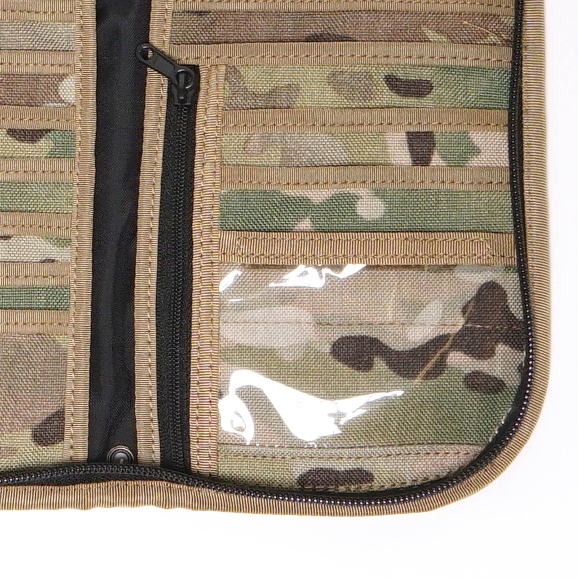 カードが2~3枚入るカードポケットが10段、通帳やパスポートが入るポケットが3個、旅券や札束が入るポケット(中央からの左右2か所)の他に小銭や小物を入れられるファスナー付ポケット、透明のIDポケット、ペン差し、そして日本らしく「印鑑ケース」が入るポケットを所せましと配置しています。